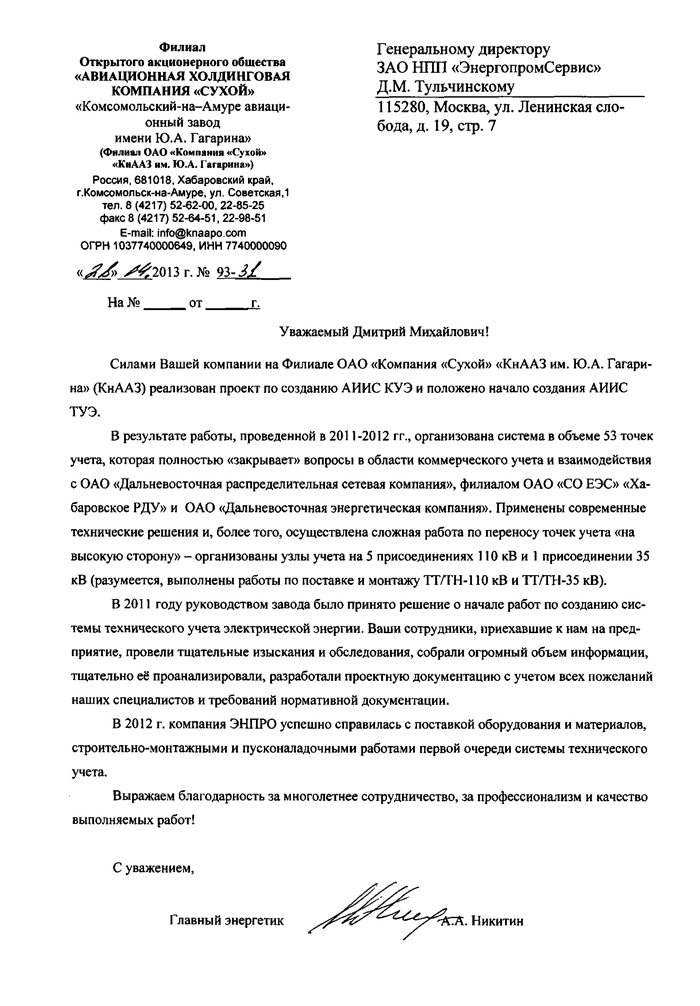 В настоящее время можно констатировать, что внедрение системы учёта на ОАО «Уфаоргсинтез» позволило снизить расходы не менее, чем на 20 млн руб. в год.
